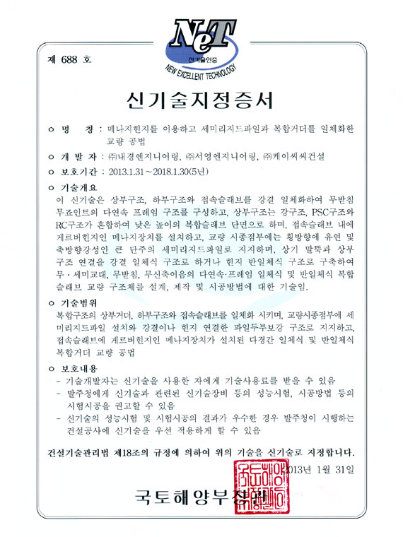 신기술 688호 지정증서